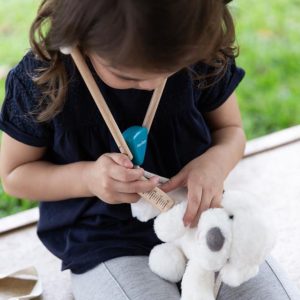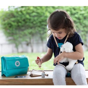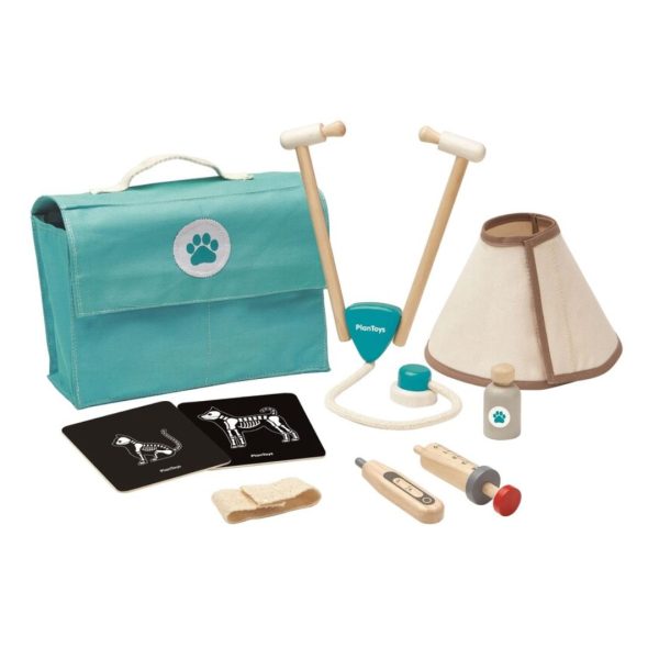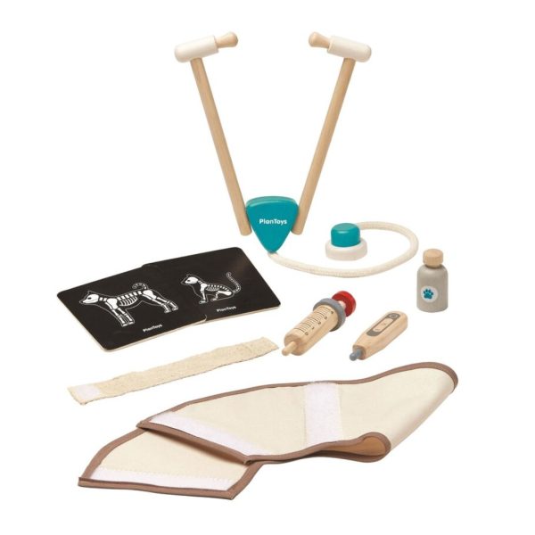 Tähän settiin sisältyy kaikki tarvittava Edward koiran tai hänen ystäviensä hoitamiseksi: Lämpömittari, ruisku, side, kartion mallinen kaulus ja ihan oikea stetoskooppi.