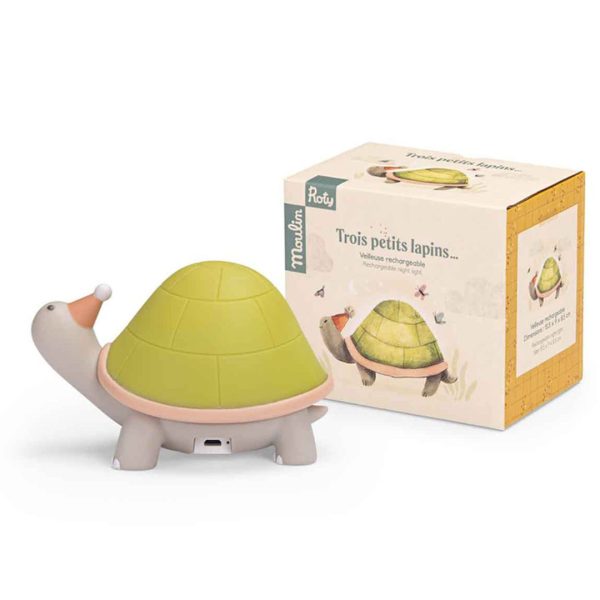 Tämä pieni yölamppu on kilpikonnan muotoinen ja tarjoaa miellyttävän himmeän valon. Sen akun kapasiteetti on 15 tuntia ja se voidaan ladata mukana tulevalla USB-kaapelilla vain 3 tunnissa. Siinä on ajastintoiminto, joten valo sammuu automaattisesti 30 minuutin kuluttua.