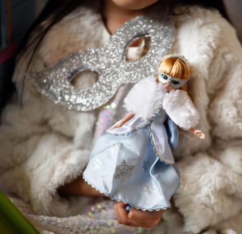 Lottie pukee ylleen hopeisen kimaltelevan naamion ja upean jäänsinisen ja pakkasvalkoisen puvun, joka on täynnä hopeisia lumihiutaleita – tunnistaako kukaan hänen ystävistään hänet?