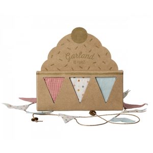 Viirinauhassa on 10 lippua ja 2 pienenpientä Mailegin logokolikkoa päissä antamassa hiukan painoa jotta narut laskeutuvat kauniisti.