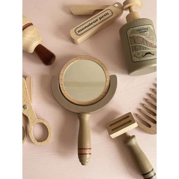 Kaikkien pikkupartureiden tyylikäs, puinen parturointosetti. Oui, oui monsieur, c’est magnifique!