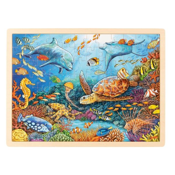 Puinen, yksityiskohtainen palapeli ja tukeva kokoamisalusta.