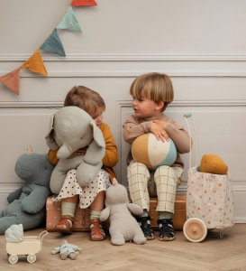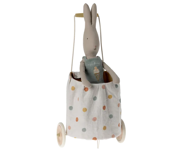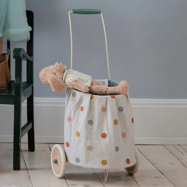 Kärry on tarpeen kaikkien pehmolelujen ja lelujen kuljettamiseen ja säilyttämiseen. Se on päällystetty luonnollisella kankaalla, jossa on pehmeä pinnoite, joka auttaa pitämään kankaan puhtaana. Kangasosa on helppo irrottaa ja pestä.