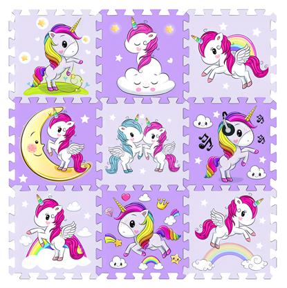 Yksisarvisilla koristeltu vaahtomuovilattia on lapsille maaginen paikka tutkia ja eksyä unelmiinsa. Pehmeillä tekstuureillaan ja maagisilla yksisarvisaiheillaan se luo fantasian ja leikin tunnelman.
